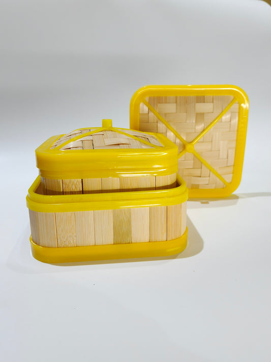 DINER WARES Dim Sum Basket Square with Yellow Border