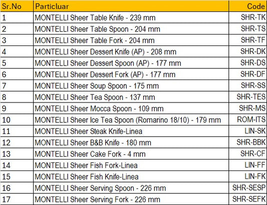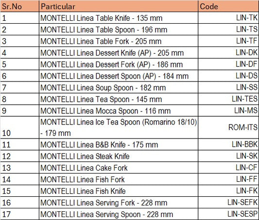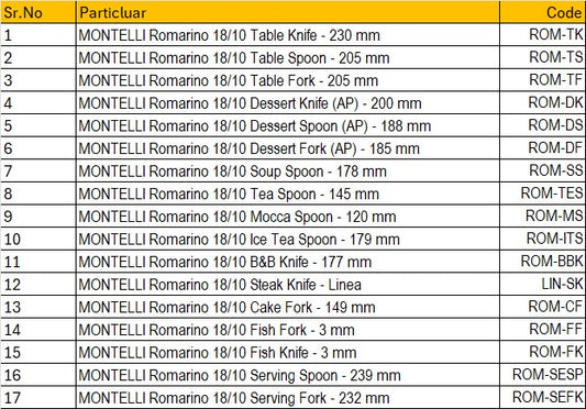 MONTELLI Romarino Cutlery 18/10 - 3.5 mm