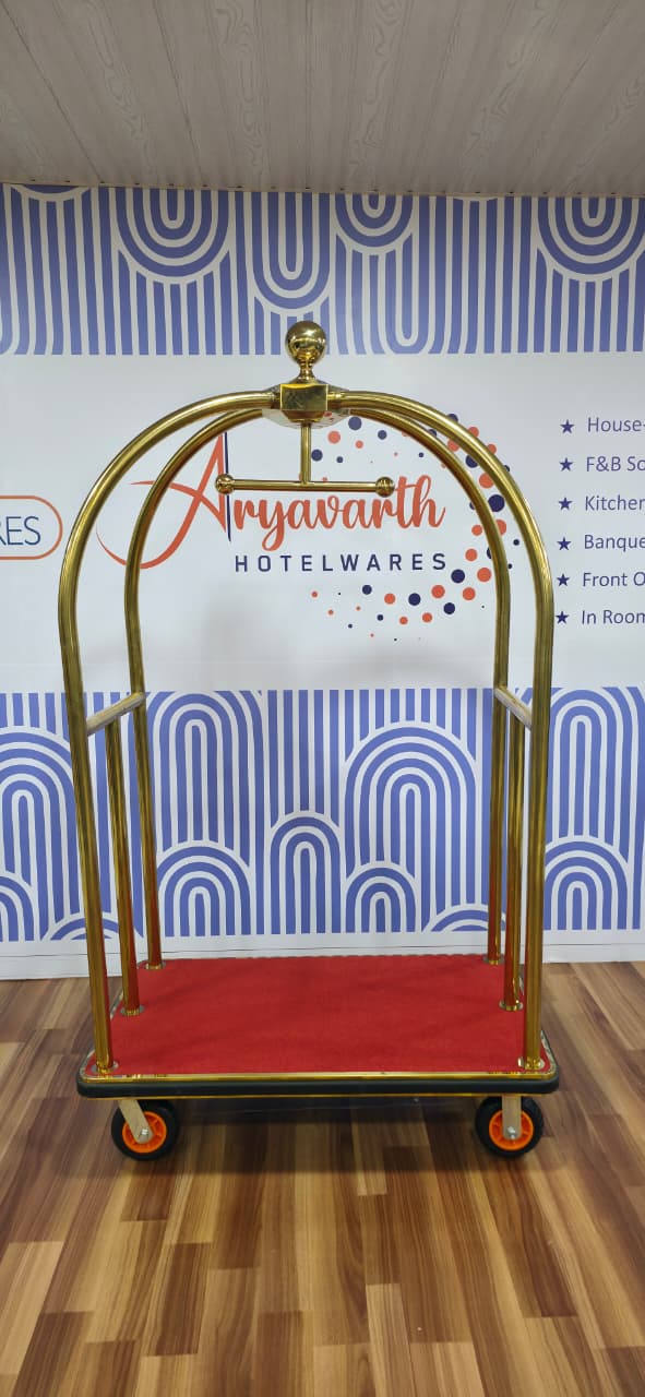 DINER WARES Bellmans Bird Cage Luggage Trolley Brass / SS Finish and Black / Red Carpet Economy