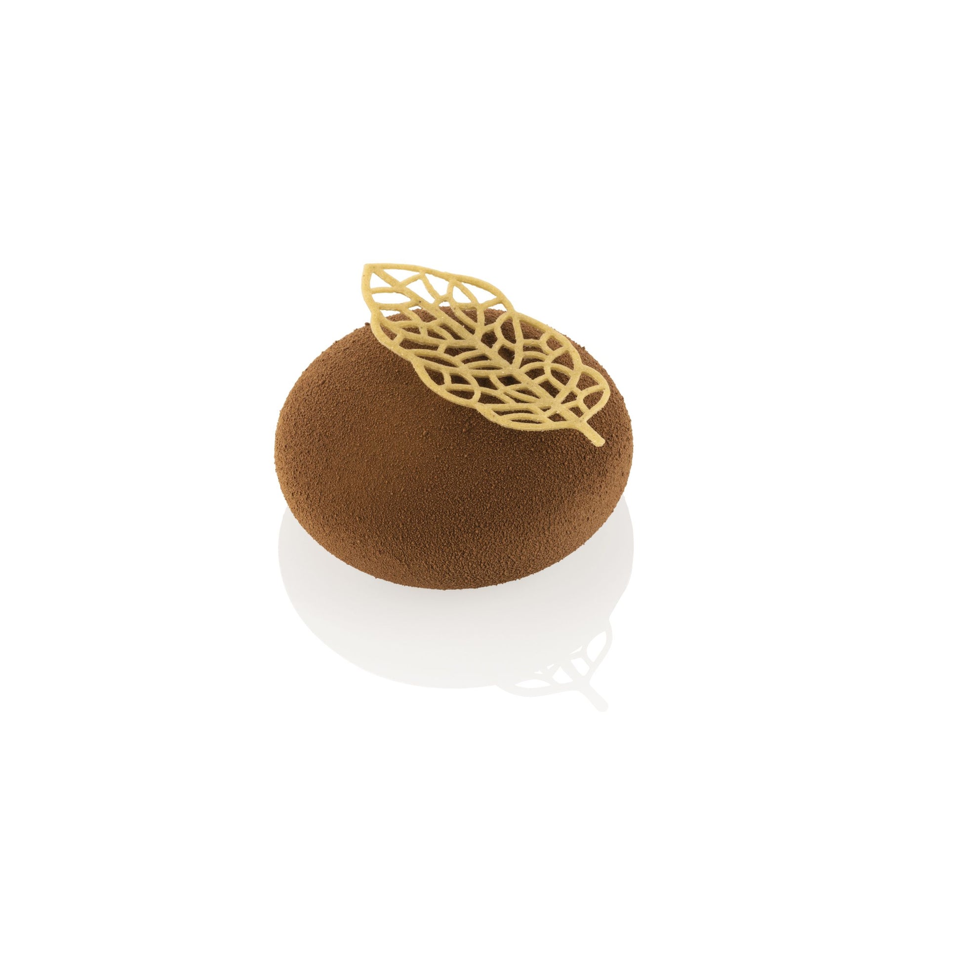 Garden features three different shapes in one mold. The mat can be used with sweet or savory "pâte à cigarette" to create elegant and refined decorations. They are useful for giving a refined touch to desserts or for decorating first and second courses.