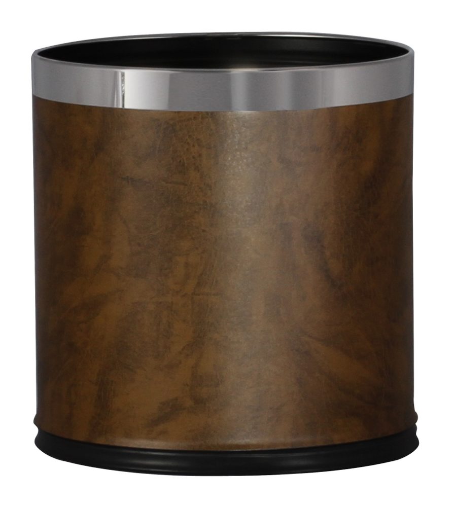 Lincoln Round Bin, metal double layer 10L, H265/W225mm, include metal inner liner, S/S ring, anti-slip rubber base, PU leatherette Brown