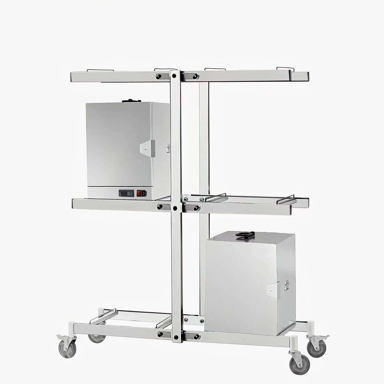 Storage and Transport Rack Mobile Trolley HOT BOx with electrical plug sockets for keeping hot box warm Size 1120*477*1450mm Height (upto six numbers hot box can be plugged in and kept warm before loading food)