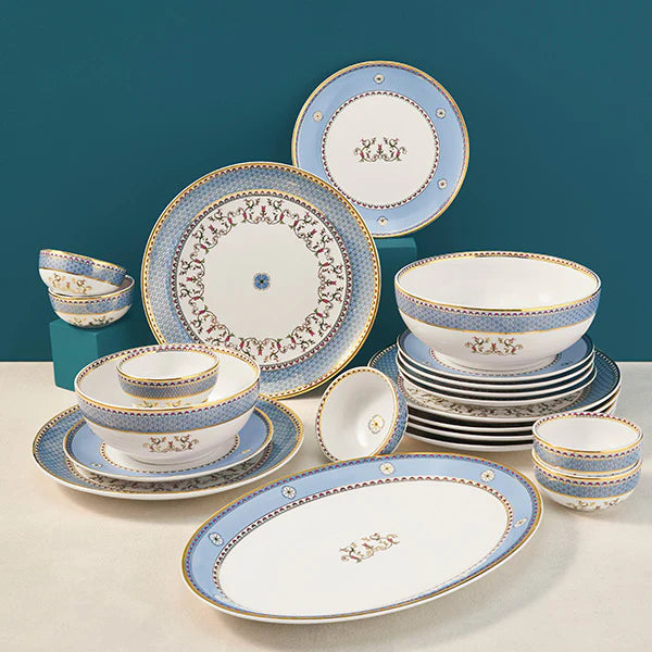 Our Swarn Mahal’s vibrant dinner set is the epitome of sophistication. Including dinner plates, side plates, bowls, and elegant cutlery, this set is perfect for creating a stylish table setting for any occasion, from casual family dinners to formal gatherings. Crafted with attention to detail, our dinner set will enhance every meal with its timeless beauty.